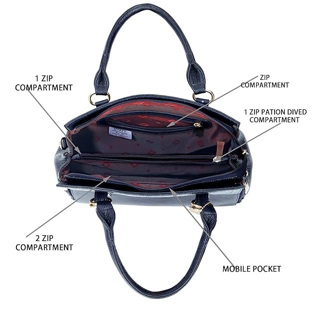 1 Main Large Zip compartment / 2 Inside Zip Pockets / Inside Mobile Case / Inside Pen Case / Inside Card Case / 1 Back Side Pocket / 1 Main Side Pocket