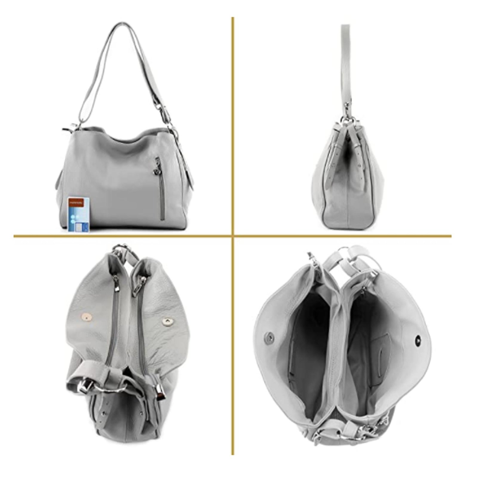 2 Main Large Zip compartments / Inside Zip Pockets / Inside Mobile Case / 1 Back Pocket / 1 Front Zip Pocket