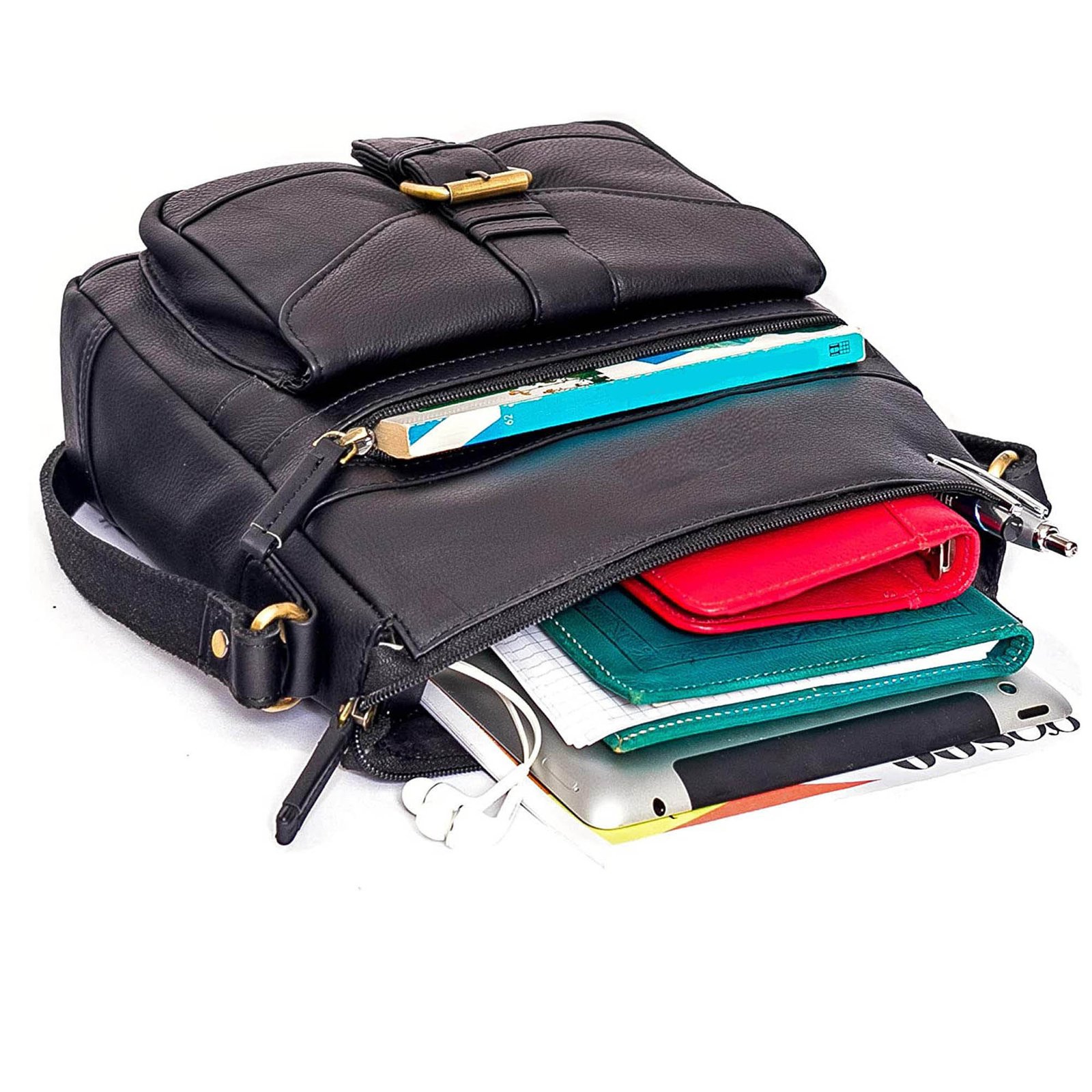 1 Main Large Zip compartment / 1 Front Zip Pocket / 1 Front Pocket / Inside Mobile Case / Inside Pen Case / Inside Card Case / 1 Back Pocket / 1 Inside Zip Pocket